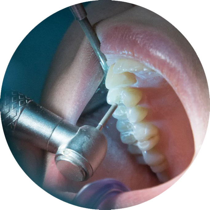 - The dentist performs scaling and polishing to remove plaque and tartar from above and below the gum line and root surfaces.