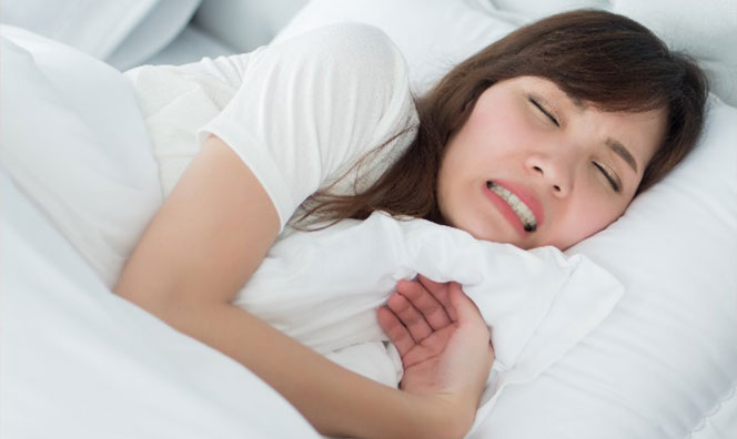 Teeth grinding or clenching, also called bruxism, is the involuntary grinding, clenching, or gnashing of teeth. It can occur during sleep or while awake when concentrating, stressed, or anxious. People who grind or clench their teeth during sleep are more likely to have other sleep disorders such as snoring and sleep apnoea, which can lead to poor sleep quality.