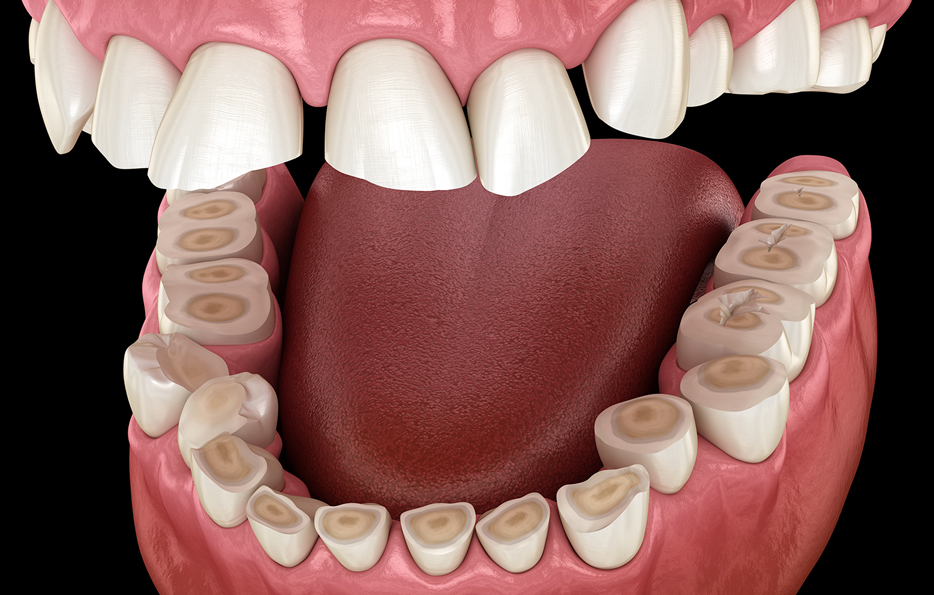 Worn tooth enamel